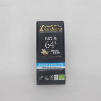 Masse de cacao, sucre de gleur de coco (30%), beurre de cacao, noisette, inuline d'agave, cacao (64%) Tablette de chocolat végan et sans gluten