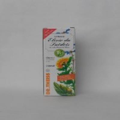 Alcool 38° vol. de raisin issus de l'agriculture biologique, extrait des plantes arômatiques (manne, racine d'angélique, aloes naturel, racine de rhubarbe, feuille de séné, racine de zédoaire, myrrhe, racine de carline, camphre naturel, valériane, safran, cannelle, cardamome